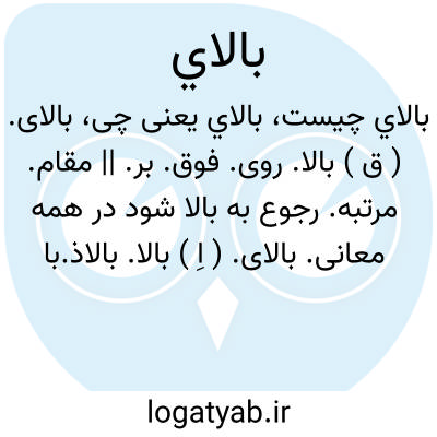 بالای. ( ق ) بالا. روی. فوق. بر. || مقام. مرتبه. رجوع به بالا شود در همه معانی.