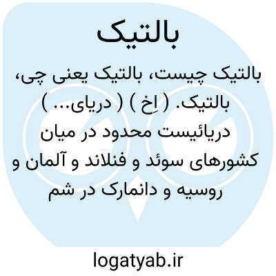 بالتیک. ( اِخ ) ( دریای... ) دریائیست محدود در میان کشورهای سوئد و فنلاند و آلمان و روسیه و دانمارک در شمال اروپا و دریای شمال آن را به اقیانوس اطلس می پیوندد. این دریا بسته است و سواحل فنلاند را به دریای آزاد راه میدهد.