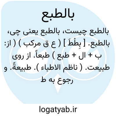 بالطبع. [ بِطْطَ ] ( ع ق مرکب ) ( از: ب + ال + طبع ) طبعاً. از روی طبیعت. ( ناظم الاطباء ). طبیعةً. و رجوع به طبع شود.
