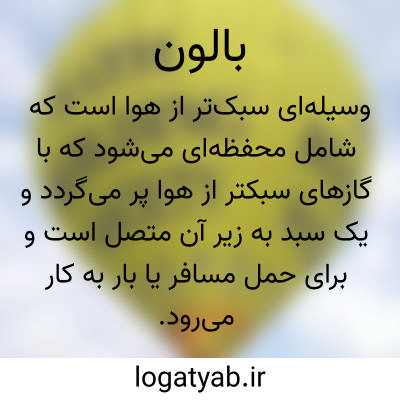 {balloon} [حمل ونقل هوایی] وسیله ای هوایی که نیروی جلوبرنده ندارد و بر بعضی از آنها موتور نصب می شود