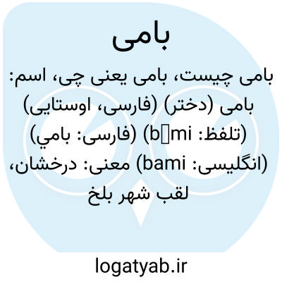 اسم: بامی (دختر) (فارسی، اوستایی) (تلفظ: bāmi) (فارسی: بامي) (انگلیسی: bami)