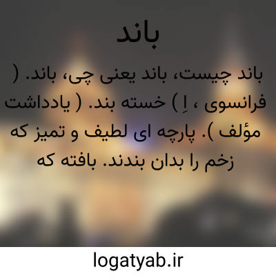 باند. ( فرانسوی، اِ ) خسته بند. ( یادداشت مؤلف ). پارچه ای لطیف و تمیز که زخم را بدان بندند. بافته که عضو شکسته و یا خسته را پس از پانسمان و دواگذاری بدان بندند که از گرد و خاک و هوا محفوظ بماند. || پارچه و یا نخی که بدان هر چیزی را بندند. || بسته و توده از هرچیز، چون بسته و توده کاغذ و امثال آن. || مأخوذ از فرانسوی، گروه و دسته ای که هدف و مقصود خاص دارند. جمعی که گرد هم آیند و برای انجام دادن کاری هریک وظیفه ای بعهده گیرند. مثل، باند قاچاقچی. باند هروئین ساز و هروئین فروش، باند بچه دزدها و... باندبازی، دسته بندی. || باریکه ای آسفالت شده از زمین فرودگاه که هواپیما بر آن فرود آید.