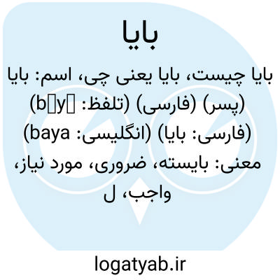 بایا. ( نف ) باینده. که باید. بایست. ( از فرهنگ شعوری ). دربایست. ( فرهنگ اسدی ) ( برهان قاطع ). بایسته. از ریشه بایستن است. ( فرهنگ رشیدی ). آنچه در کار بوده و محتاج ٌالیه باشد. ( ناظم الاطباء ). واجب. ضروری. وایا. ( از فرهنگ شعوری ج 1 ورق 150 ). محتاج ٌالیه. ( برهان قاطع ) ( آنندراج ). لابدٌمنه. ضرور. ( فرهنگ جهانگیری ). محتوم. لازم. دروا. وایه. رشیدی و مؤلف فرهنگ نظام نویسند: مخفف بایان است اما براساسی نیست و بایان خود صفت فاعلی است: