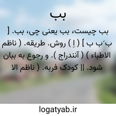 بب. [ ب َب ب ] ( اِ ) روش. طریقه. ( ناظم الاطباء ) ( آنندراج ). و رجوع به ببان شود. || کودک فربه. ( ناظم الاطباء ) ( آنندراج ). نامی که به طفل بسیار کوچک دهند. ( از فرهنگ دزی ج 1 ص 49 ).