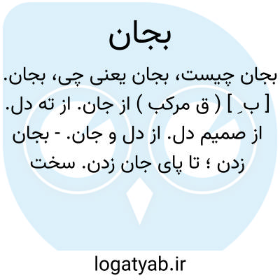 بجان. [ ب ِ ] ( ق مرکب ) از جان. از ته دل. از صمیم دل. از دل و جان.