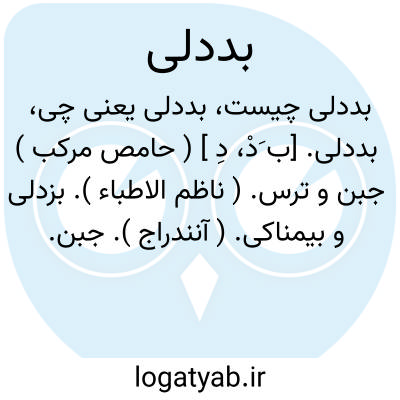 بددلی. [ب َدْ، دِ ] ( حامص مرکب ) جبن و ترس. ( ناظم الاطباء ). بزدلی و بیمناکی. ( آنندراج ). جبن. ( زمخشری ) ( منتهی الارب ). فَشَل. ( تاج المصادر بیهقی ). تُشحَة. هُلاع. وَهَل. ( از منتهی الارب ). ترس. ترسندگی. بیم. ترسانی. هراس. خوف. مقابل دلیری، شجاعت. ( یادداشت مؤلف ): بسیار مگویید، بسیار گفتن اندر حرب بددلیست ونگرید تا شمشیر نزنید جز خدای را. ( تاریخ بلعمی ).