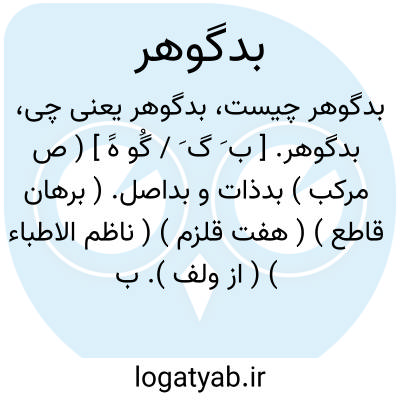 بدگوهر. [ ب َ گ َ / گُو هََ ] ( ص مرکب ) بدذات و بداصل. ( برهان قاطع ) ( هفت قلزم ) ( ناظم الاطباء ) ( از ولف ). بدسرشت و بداصل. ( آنندراج ). هرچیز که اصلاًبد باشد. بدنژاد. ( ناظم الاطباء ). بی اصل. بی گوهر. بدنهاد. بدفطرت. نانجیب. ( یادداشت مؤلف ):