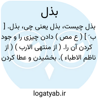 بذل. [ ب َ ] ( ع اِمص ) دهش. ( منتهی الارب ) ( آنندراج ) ( ناظم الاطباء ). عطا. ( لغت نامه تاریخ بیهقی ) ( از اقرب الموارد ) ( ناظم الاطباء ). انعام و احسان. ( ناظم الاطباء ). جود. بخشش. داد. ( یادداشت مؤلف ):