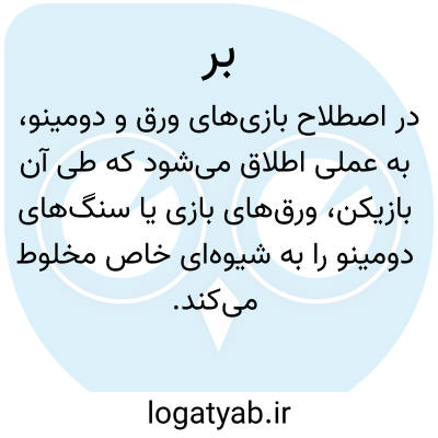 ریشۀ مصدر «بریدن»، اصطلاحی در انواع بازی ورق و نیز دومینو؛ و آن عملِ مخلوط کردنِ ورق های بازی یا سنگ های دومینو است، به وجهی که امکانِ هر نوع زدوبند به کل ازمیان برود و بختِ هر یک از بازیکنان در تقسیم انواع ورق یکسان باشد. بُر، که با مصدرهای«زدن» و«خوردن» صرف می شود، انواعی دارد که مردمان بدان ها نام هایی مزاح آمیز داده اند. معمول است که اوستا، پس از بُرزدن، دستۀ ورق ها را پیش روی حریف می گیرد تا او به اصطلاح کوپ کند؛ بدین ترتیب که به میلِ خود و به شکلی کاملاً تصادفی، تعدادی ورق از زیر بکشد و بر روی ورق های دیگر بگذارد تا شائبۀ تقلّب از میان برود و داعیه ای در میان نباشد. نیز ← بانک، بازی؛ بیست ویک، بازی؛ پاسور،_بازی