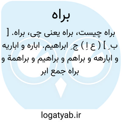 براه. [ ب ِ ] ( ع اِ ) ج ِ ابراهیم. اباره و اباریه و ابارهه و براهم و براهیم و براهمة و براه جمع ابراهیم است. ( منتهی الارب ).