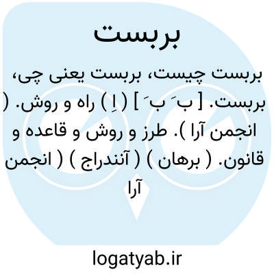 بربست. [ ب َ ب َ ] ( اِ ) راه و روش. ( انجمن آرا ). طرز و روش و قاعده و قانون. ( برهان ) ( آنندراج ) ( انجمن آرا ). دستور. ( غیاث اللغات ). نظم و شیوه. ( انجمن آرا ). طرز و روش و راه و قاعده وقانون و رسم و نظام. ( ناظم الاطباء ) ( غیاث اللغات ). || و گفته اند بمعنی نحو است که علمی است معروف و بخش بمعنی صرف است. ( انجمن آرا ) ( آنندراج ).