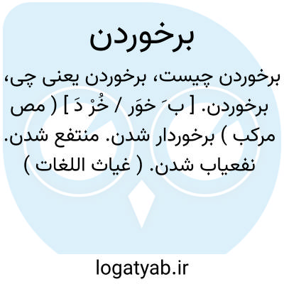 ۱. به طور اتفاقی دیدن کسی (چیزی )، مواجه شدن با کسی (چیزی )، ملاقات کردن با کسی (چیزی ): جان تازه می شود ز لب روح پرورت / هرکسی که «برخورَد» به تو از عمر برخورد (صائب: لغت نامه: برخوردن ).