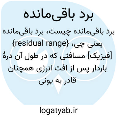 {residual range} [فیزیک] مسافتی که در طول آن ذرۀ باردار پس از افت انرژی همچنان قادر به یونیده کردن محیط گذار است