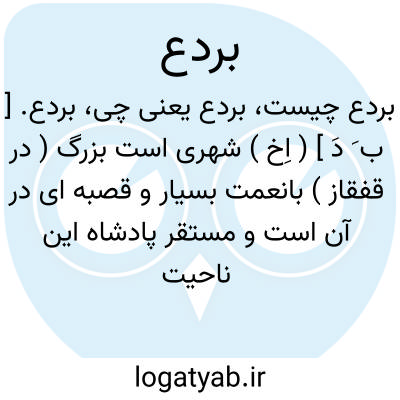کنون بردعش خواند آموزگار.نظامی.و رجوع به تاریخ سیستان ص 330 و نزهة القلوب ص 91، 92 و 181 و تذکرة الملوک چ 2 ص 77 و تاریخ غازان ص 350 و آنندراج شود.