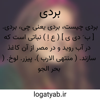 بردی. [ ب َ دی ی ] ( ع اِ ) نباتی است که در آب روید و در مصر از آن کاغذ سازند. ( منتهی الارب ). پیزر. لوخ. ( بحر الجواهر ). و بعربی حلفا می گویندو در اصفهان آن گیاه را پیزر می گویند و آن نباتی باشد ساقش غلیظ و زیاده برذرعی و مدور و نرم و آنرا ریزه کرده ریسمان ترتیب دهند و در تحفه گفته قرطاس مصری از آن است که آنرا با نشنین که نوعی نیلوفر است مخلوط کرده کاغذ سازند. ( از انجمن آرا ). گیاهی است که از آن حصیر سازند. ( از اقرب الموارد ). و کتب اهل مصرفی القرطاس المصری و یعمل من قصب البردی. ( ابن الندیم ). لُخ. لوخ. گیاهی که از آن حصیر بافند. ( یادداشت مؤلف ). و رجوع به فهرست مخزن الادویه و تحفه حکیم مؤمن و بحرالجواهر و تذکره داود ضریر انطاکی شود.