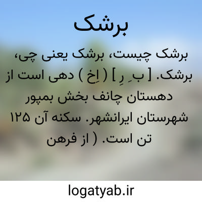 برشک. [ ب ِ رِ ] ( اِخ ) دهی است از دهستان چانف بخش بمپور شهرستان ایرانشهر. سکنه آن 125 تن است. ( از فرهنگ جغرافیایی ایران ج 8 ).