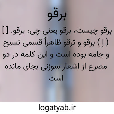برقو. [ ] ( اِ ) برقو و ترقو ظاهراً قسمی نسیج و جامه بوده است و این کلمه در دو مصرع از اشعار سوزنی بجای مانده است چنین: