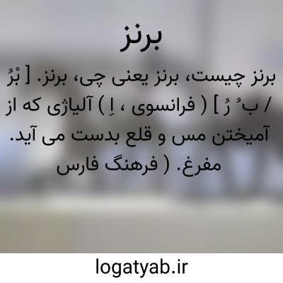 برنز. [ بْرُ / ب ُ رُ ] ( فرانسوی، اِ ) آلیاژی که از آمیختن مس و قلع بدست می آید. مفرغ. ( فرهنگ فارسی معین ). و رجوع به مفرغ شود.