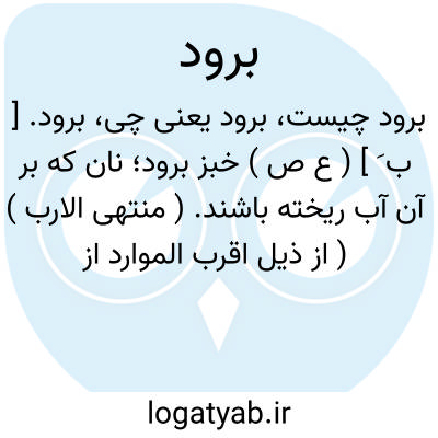 برود. [ ب َ ] ( ع ص ) خبز برود؛ نان که بر آن آب ریخته باشند. ( منتهی الارب ) ( از ذیل اقرب الموارد از لسان ). || ثوب برود؛ جامه پرزه دار. ( منتهی الارب ) ( از ذیل اقرب الموارد ). || سرد و خنک. ( منتهی الارب ) ( از اقرب الموارد ). || هرچه خنک گرداند چیزی را. ( منتهی الارب ). || ( اِ ) داروی چشم که از چیزهای سرد سازند. ( منتهی الارب ). سرمه ایست که بدان چشم را خنک کنند.( از ذیل اقرب الموارد از لسان ). سرمه. ( دهار ). قسمی سرمه بوده که چشم را خنک میداشته است. هر دوایی مبرد، و بیشتر در داروهای چشم مستعمل است چون داروها چشم را خنک کند. داروها که برای خنک کردن چشم دردگین در چشم کنند. داروها که به چشم دردگن سردی و استراحت بخشد. ج، برودات. ( یادداشت دهخدا ): برود رمان... اندر کشیدن سود دارد. ( ذخیره خوارزمشاهی ). وبرود هم اندر آخر فصل ربیع بهتر آید اًن شأاﷲ. ( ذخیره خوارزمشاهی ). داروهای قوت دهنده و تحلیل کننده می باید کشید چون برود حصرم و باسلیقون و روشنائی. ( ذخیره خوارزمشاهی ). و آنرا که حرارت قوی نباشد [ اندر سلاق، نوعی بیماری چشم ] اندر آخر علت، شیاف احمر لین و برود غوره و شیاف... ( ذخیره خوارزمشاهی ). چشم شریعت به برود رسالت او روشن گشت. ( تاریخ بیهق ). بصایرایشان را برود هدایت و کحل توفیق روشن می گرداند. ( تاریخ بیهق ). || برودالظل؛ شخص خوش معاشرت، مذکر و مؤنث در آن یکسان است. ( از اقرب الموارد ).