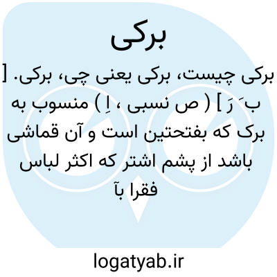 برکی. [ ب َ رَ ] ( ص نسبی، اِ ) منسوب به برک که بفتحتین است و آن قماشی باشد از پشم اشتر که اکثر لباس فقرا بآن باشد. ( غیاث اللغات ) ( آنندراج ). || کلاهی دراز که زهاد بر سر گیرند و بتازی بریس نامند، و باین معنی با کاف فارسی هم آمده است. ( برهان ) ( آنندراج ) ( انجمن آرا ):