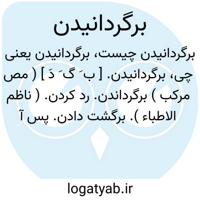 برگردانیدن. [ ب َ گ َ دَ ] ( مص مرکب ) برگرداندن. رد کردن. ( ناظم الاطباء ). برگشت دادن. پس آوردن. ( فرهنگ فارسی معین ). اعاده کردن. اعاده دادن. رجعت دادن. ارجاع. عودت دادن. ( یادداشت دهخدا ). مراجعت دادن. || واپس بردن. بازپس بردن. ( فرهنگ فارسی معین ): اًصفاح، اًعادة، اًفک، تصریف،تعویر، تکذیب، تَکرار، تکویح، جَعب، جَولة، صَدّ، صُدوع، صَرف، عَوق، کَفکفة، مَیط، اًجارة؛ برگردانیدن کسی را از راه. اجتیال؛ برگردانیدن کسی را از قصد.اًکفاء؛ برگردانیدن کسی را از اراده او. تعکیظ؛ برگردانیدن و بازداشتن از نیاز. تَقشیة؛ از حاجت برگردانیدن کسی را. جَذب؛ برگردانیدن چیزی را از جای وی.سَنح، سُنوح؛ برگردانیدن کسی را از رأی. شَجر؛ برگردانیدن کسی را از کار. شَحشحة؛ برگردانیدن شتر بانگ را. شَشقَلة؛ برگردانیدن دینار را. طَبْو؛ برگردانیدن کسی را از کاری. عَجس؛ برگردانیدن شتر را از راه جهت نشاط. قَصر؛ برگردانیدن کسی را بر کار. قَمع؛ برگردانیدن کسی را از خواسته او. کَبن؛ برگردانیدن نیکی از همسایه خویش بسوی غیر آنها. کَفاء؛ برگردانیدن کسی را و پیروی او کردن. کَفت؛ برگردانیدن چیزی رااز جهتی که روی آورده بود به آن. کَلاَ ٔ؛ برگردانیدن نگاه را چیزی. لَغد؛ برگردانیدن شتر را بر جاده راه. لفاء، لفاء؛ برگردانیدن و مایل کردن رای کسی را.مُجاذبة؛ برگردانیدن چیزی را از جای. مَجْمَجة؛ برگردانیدن سخن را از حالی به حالی. ( از منتهی الارب ).