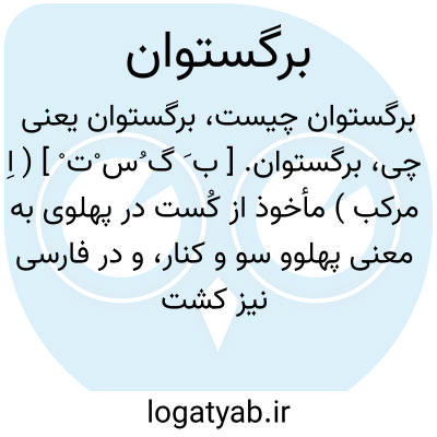 برگستوان. [ ب َ گ ُس ْت ْ ] ( اِ مرکب ) مأخوذ از کُست در پهلوی به معنی پهلوو سو و کنار، و در فارسی نیز کشت یا کست بهمین معنی است. کستی یا کشتی در پازند و فارسی به معنی کمر و مطلق رشته و بندی که به میان بندند. «ان » در آخر کلمه پسوند اتصاف است. و در گرشاسب نامه بجای برگستوان، کستوان آمده است. ( از حاشیه معین بر برهان قاطع ). پوششی باشد که در روز جنگ پوشند و اسب را نیز پوشانند. ( برهان ). آنچه لحاف مانند بر اسب اندازند تا زینت وحفاظت شود. به هندی پاکهر گویند. ( از غیاث ). پوششی بود که در روز جنگ می پوشیده اند و بر اسب نیز برای حفظ می افکنده اند، و آن جامه ای بوده که بجای پنبه در آن پیله و ابریشم فرومایه که کج و کژ گویند می گذاشته اند و می دوخته اند و آنرا کجم و کجین نیز می خوانده اند وکژ و غژ هر دو به معنی ابریشم است و بر این معنی آنرا غژاغند و کژاغند خوانند. ( آنندراج ). غالباً پوشش اسب و پیل در جنگ برگستوان و پوشش مرد جنگی زره و جوشن و کژاگند بوده است اما بر پوشش مرد جنگی نیز اطلاق کرده اند. تَجفاف. ( دهار ) ( منتهی الارب ):