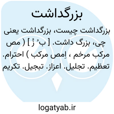 بزرگ داشت. [ ب ُ زُ ] ( مص مرکب مرخم، اِمص مرکب ) احترام. تعظیم. تجلیل. اعزاز. تبجیل. تکریم. تفخیم. تعزیز به. حرمت. اعظام. تعظیم به. توقیر. اکرام. ( یادداشت بخط دهخدا ): دو بدر صومعه من آمدند و من از بهر بزرگداشت ایشان برخاستم و در باز کردم. ( اسکندرنامه نسخه سعید نفیسی ). و گفت از بزرگداشت خدای تعالی یکی آنست که در بیماری گله نکنی. ( کیمیای سعادت ). و چنین مرد زود، زود بدست نیامد که دلها و چشمها همه بحشمت و بزرگداشت او آکنده است. ( آثارالوزراء ). و از بزرگداشت او درویشان را چنان نقل کنند که در مجلس اودرویشان چون امیران بودند. ( تذکرة الاولیاء عطار ).