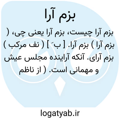 ( بزم آرا ) ( اسم ) آنکه مجلس عیش و مهمانی را آرایش میکند بزم آرا.