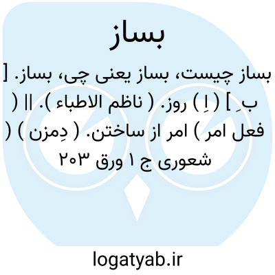 بساز. [ ب ِ ] ( اِ ) روز. ( ناظم الاطباء ). || ( فعل امر ) امر از ساختن. ( دِمزن ) ( شعوری ج 1 ورق 203 ). رجوع به ساختن شود. || ( ص مرکب )آماده و درست، کوک و مجهز برای نواختن: