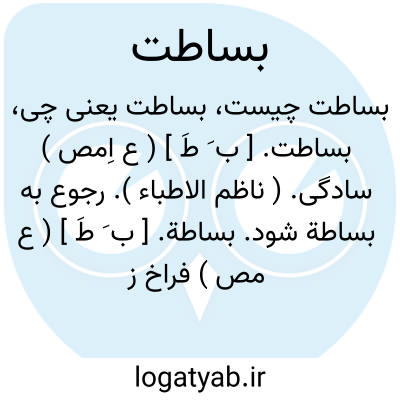 بساطت. [ ب َ طَ ] ( ع اِمص ) سادگی. ( ناظم الاطباء ). رجوع به بساطة شود.