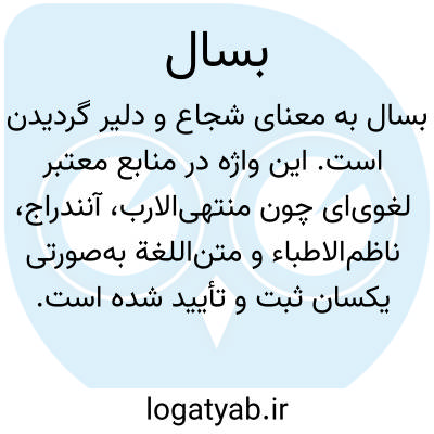 بَسَال مصدری عربی و به معنای شجاع و دلیر گردیدن است. این واژه در منابع معتبر لغوی‌ای چون منتهی‌الارب، آنندراج، ناظم‌الاطباء و متن‌اللغة به‌صورتی یکسان ثبت و تأیید شده است. در کاربردهای زبانی، این مصدر به حالت‌های مختلف صرف می‌شود و بر کیفیت رزم‌آوری و نترسیدن در رویارویی با خطر دلالت دارد. بسالت، که از همین ریشه مشتق می‌گردد، به‌طور گسترده‌تری برای بیان مفهوم دلاوری و پایمردی در متون ادبی و تاریخی به‌کار رفته است. برای دستیابی به اطلاعات بیشتر و بررسی دقیق‌تر شواهد و کاربردهای این واژه، می‌توان به مدخل بسالت در فرهنگ‌های نام‌برده مراجعه نمود. این ریشه زبانی، گویای مفهومی ارزشمند در حیطهٔ صفات اخلاقی و رفتاری است.