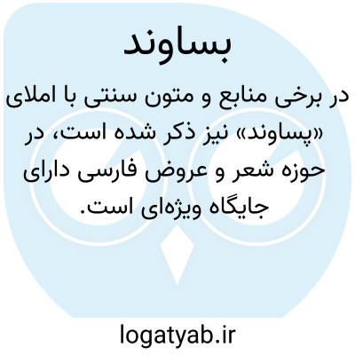 در برخی منابع و متون سنتی با املای «پساوند» نیز ذکر شده است، در حوزهٔ شعر و عروض فارسی دارای جایگاه ویژه‌ای است. ریشهٔ این واژه به معنای «پسوند» یا «آنچه در پی می‌آید» اشاره دارد و به همین سبب، برخی متون مانند «انجمن آرا» و «آنندراج» تأکید کرده‌اند که کاربرد آن در معنای قافیه، به دلیل قرار گرفتن قافیه در دنبالهٔ ابیات، صحیح‌تر و دقیق‌تر است. در تعریف اصلی عروضی، بساوند مترادف با «قافیه» در شعر محسوب می‌شود و از ارکان بنیادین تعیین‌کنندهٔ وزن و آهنگ کلام موزون است.