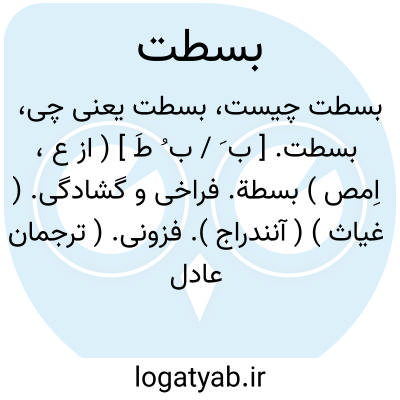 بسطت. [ ب َ / ب ُ طَ ] ( از ع، اِمص ) بسطة. فراخی و گشادگی. ( غیاث ) ( آنندراج ). فزونی. ( ترجمان عادل بن علی ص 26 ). فراخی و افزونی. ( مهذب الاسماء ). فراخا. گشادی. || فراخی علم. ( ناظم الاطباء ). || کنایه از دوستی. ( غیاث ). کنایه ازدوستی و بالضم خطاست. ( آنندراج ). || فضیلت. || درازی جسم و کمال آن. ( ناظم الاطباء ). || دست رس. ( بحر الجواهر ). || بزرگی و وسعت: چگونه کشتندی ایشان را که کار ایشان در بسطت و حشمت و ولایت و عدت بدین معنی بس خواست رسید. ( تاریخ بیهقی ). که بسطت ملک او تاچه حد بوده است. ( کلیله و دمنه ). و آن پادشاه از ملوک آل سامان به مزید بسطت ملک مخصوص بود. ( کلیله و دمنه ). و حال علو همت و کمال بسطت ملک او از آن شایعتر است که در شرح آن به اشباع حاجت افتد. ( کلیله و دمنه ). مغرور بحول و قدرت قدرخان و کثرت عدید و باس شدید و حبل متین و بسطت و تمکین. ( ترجمه تاریخ یمینی ص 266 ).