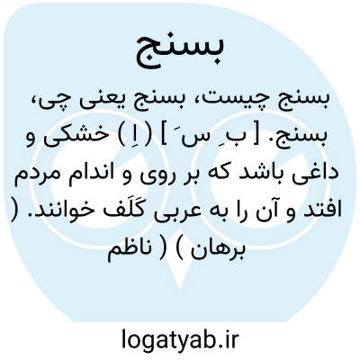 بسنج. [ ب ِ س َ ] ( اِ ) خشکی و داغی باشد که بر روی و اندام مردم افتد و آن را به عربی کَلَف خوانند. ( برهان ) ( ناظم الاطباء ) ( انجمن آرا ) ( آنندراج ) ( تذکره داود ضریر انطاکی ص 78 ). || ( فعل ) امر بر سنجیدن. ( برهان ) ( انجمن آرا ) ( آنندراج ).