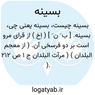 بسینه. [ ب َ ن َ ] ( اِخ ) از قرای مرو است بر دو فرسخی آن. ( از معجم البلدان ) ( مرآت البلدان ج 1 ص 212 ).