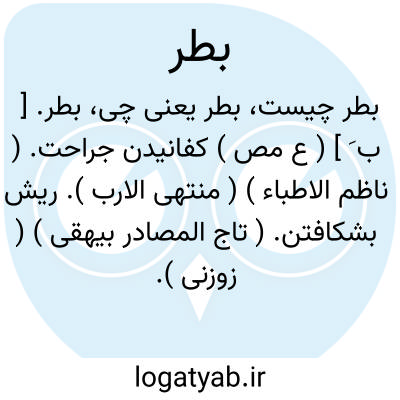 بطر. [ ب َ ] ( ع مص ) کفانیدن جراحت. ( ناظم الاطباء ) ( منتهی الارب ). ریش بشکافتن. ( تاج المصادر بیهقی ) ( زوزنی ). شکافتن. زخم. ( مؤید الفضلاء ) ( غیاث ) ( آنندراج ). و رجوع به دزی ج 1 ص 94 شود.