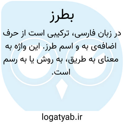 در زبان فارسی، ترکیبی است از حرف اضافهی به و اسم طرز. این واژه به معنای به طریق، به روش یا به رسم است. در متون کهن و لغتنامههای معتبر فارسی، از جمله در ناظمالاطباء، این واژه به همین معنا آمده است و برای اشاره به شیوه، روش یا صورت انجامدادن کاری به کار میرود. گاهی نیز این واژه، جنبهی ادبی یا رسمی پیدا میکند و در ترکیبهای نوشتاری یا گفتاری بهصورت بطرز خاصی دیده میشود.