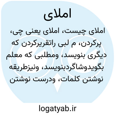 پرکردن، م لبی راتقریرکردن که دیگری بنویسد، ومطلبی که معلم بگویدوشاگردبنویسد، ونیزطریقه نوشتن کلمات، ودرست نوشتن