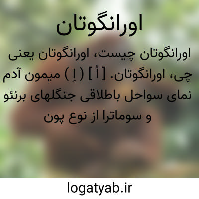 اورانگوتان. [ اُ ] ( اِ ) میمون آدم نمای سواحل باطلاقی جنگلهای برنئو و سوماترا از نوع پونگو یا سیمیا باهوش وقابل تربیت است. با چهار دست و پا راه میرود یا خودرا بدرختان می آویزد. بدنش پوشیده از موهای زبر سرخ فام است و قد افراد بالغ آن به یک متر و نیم و وزنشان به صدوبیست کیلوگرم میرسد. ( دایرةالمعارف فارسی ).