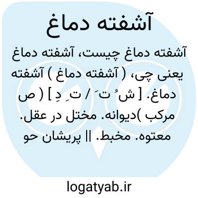 ( آشفته دماغ ) آشفته دماغ. [ ش ُ ت َ / ت ِ دِ ] ( ص مرکب )دیوانه. مختل در عقل. معتوه. مخبط. || پریشان حواس. آشفته عقل. || غمین: