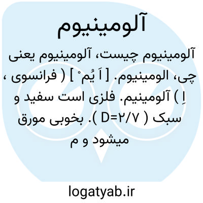 ( آلومینیوم ) ( اسم ) فلزیست سفید و سبک بخوبی مورق میگردد. و مفتولهای بسیار نازک از آن میتوان ساخت. در ۶۶٠ درجه حرارت ذوب میگردد و در ۶٠٠ درجه نرم میشود و چون در هوا سطحش از یک ورقه اکسید آلومینیوم پوشیده میشود که بقیه را حفظ میکند جزو فلزات فساد ناپذیر محسوب میگردد.