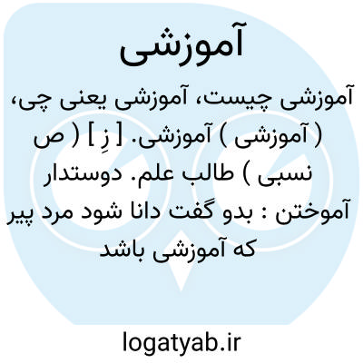 ( آموزشی ) ( صفت ) منسوب به آموزش. ۱ - تعلیمی تعلیماتی: امور آموزشی. ۲ - طالب علم دوستدار آموختن: بدو گفت دانا شود مرد پیر که آموزشی باشد و یاد گیر ( فردوسی ).