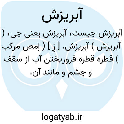 ( آبریزش ) آبریزش. [ زِ ] ( اِمص مرکب ) قطره قطره فروریختن آب از سقف و چشم و مانند آن.