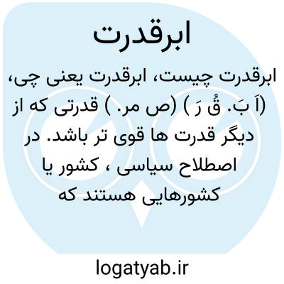 (اَ بَ. قُ رَ ) (ص مر. ) قدرتی که از دیگر قدرت ها قوی تر باشد. در اصطلاح سیاسی، کشور یا کشورهایی هستند که از نظر قدرت صنعتی و نظامی از کشورهای دیگر قوی ترند و بر صحنة سیاست بین المللی فرمانروایی دارند.