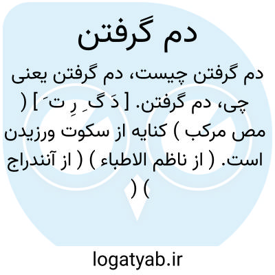 دم گرفتن. [ دَ گ ِ رِ ت َ ] ( مص مرکب ) کنایه از سکوت ورزیدن است. ( از ناظم الاطباء ) ( از آنندراج ) ( از برهان ). کنایه از سکوت است. ( لغت محلی شوشتر ).