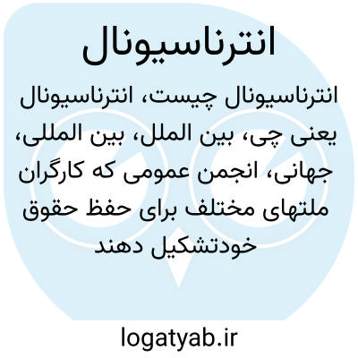 بین الملل، بین المللی، جهانی، انجمن عمومی که کارگران ملتهای مختلف برای حفظ حقوق خودتشکیل دهند