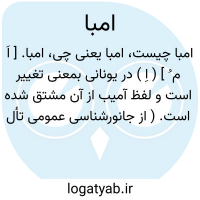 امبا. [ اَ م ُ ] ( اِ ) در یونانی بمعنی تغییر است و لفظ آمیب از آن مشتق شده است. ( از جانورشناسی عمومی تألیف مصطفی فاطمی ج 1 ص 93 ).