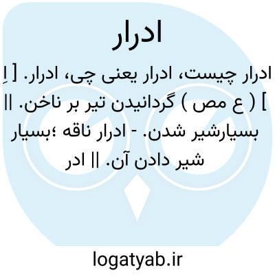و ادرار ابر گشت همه دُرّ آبدار.حاتمی هروی. || شیر و باران فروگذاشتن. ( زوزنی ). || پیوسته گردانیدن عطا. ( تاج المصادر بیهقی ) ( زوزنی ). پیوسته کردن بخشش. باربار بخشش نمودن. ( غیاث اللغات ). || آب ورطوبت راندن، چنانکه داروهای مدرّ: ادرار بول، ادرار حیض، ادرار طمث: بر ادرار به گلشکر علاج کردم شفا یافت. ( ذخیره خوارزمشاهی ). و هر گاه که مادّه برگها میل کند استفراغ یا بعرق باشد یا به ادراربول. ( ذخیره خوارزمشاهی ). و داروهای لطیف کننده و ادرار بول و طمث آرنده. ( ذخیره خوارزمشاهی ). و شربتهاکه ادرار بول کند بکار دارند. ( ذخیره خوارزمشاهی ).ازبهر آنکه رطوبتها را بعرق تحلیل نباشد رطوبتها درتن بماند و بدین سبب ادرار بول بیشتر باشد. ( ذخیره ٔخوارزمشاهی ). آبی ترش معده را قوی کند و ادرار کند.( ذخیره خوارزمشاهی ). و تدبیر ادرار بول... برفق باید کرد. ( ذخیره ). هر روز قلیه فرمودمی از کوک از بهره آنکه ادرار کند. ( ذخیره ). و بعضی داروها ادرار بول کند چون بادیان و تخم کرفس و فطراسالیون و مانند آن. ( ذخیره خوارزمشاهی ). بطم بنمشک، عرب حبةالخضرا خوانند زیادتی اشتهای طعام آرد و ادرار بول کند. ( نزهةالقلوب ). || ( اِ ) در تداول عامه ادرار، بول و شاش را گویند: ادرار کردن. ادرار داشتن. || وظیفه و مقرری. اجراء. مرسوم. مستمری. راتبه. عطیه. انعام: