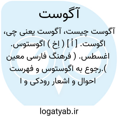 اگوست. [ اُ ] ( اِخ ) اگوستوس. اغسطس. ( فرهنگ فارسی معین ).رجوع به اگوستوس و فهرست احوال و اشعار رودکی و ایران باستان ص 2663 و 2382 و 2385 و 2419 و 2384 شود.