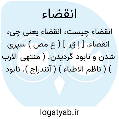 انقضاء. [ اِ ق ِ ] ( ع مص ) سپری شدن و نابود گردیدن. ( منتهی الارب ) ( ناظم الاطباء ) ( آنندراج ). نابود شدن و منقطع گردیدن. ( از اقرب الموارد ). بسرآمدن. ( ترجمان القرآن جرجانی ) ( غیاث اللغات ). سپری شدن و بسرآمدن روزگار. ( تاج المصادر بیهقی ). بسرآمدن مدت. ( مصادر زوزنی ). گذشتن. برسیدن. رسیدن. منقضی گشتن. تقضی. انصرام. ( یادداشت مؤلف ).